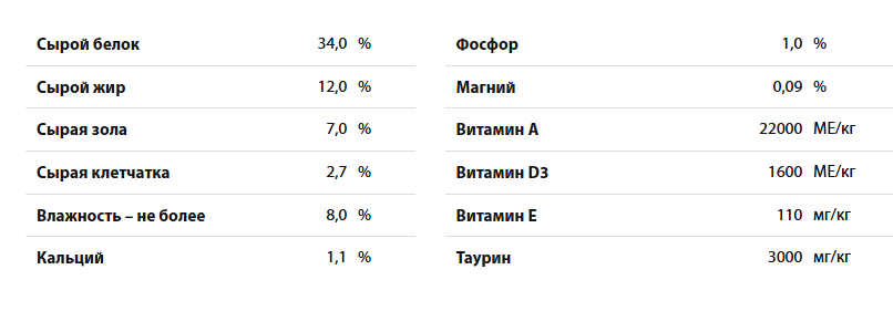 В составе корма нет куриного мяса, яиц, а также неясных субпродуктов. Все ингредиенты прописаны чётко и подробно — мы заботимся о том, чтобы вы могли подобрать ту формулу питания, которая полностью бы устроила вашего питомца. Рис и маис добавлены в цельном виде, что положительно влияет на моторику кишечника домашних животных. Мягкому пищеварению способствуют яблоки и тыквенная мякоть.
